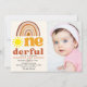Celebrate your baby's first birthday with our boho-style design featuring the phrase "ONE-DERFUL" in retro typography and a boho-style sunburst. This design is perfect for celebrating your little one. The design features retro colors and can be personalized with your party details. Don't hesitate; get yours now!