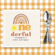 Celebrate your baby's first birthday with our boho-style design featuring the phrase "ONE-DERFUL" in retro typography and a boho-style sunburst. This design is perfect for celebrating your little one. The design features retro colors and can be personalized with your party details. Don't hesitate; get yours now!