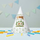 One Happy Camper Bären Party Hut ist entworfen, um mit unserer One Happy Camper Bear Birthday Invitation Collection zu koordinieren. Dieses Party mit einem bezaubernden Bären, umgeben von der Natur, strahlt den Geist eines glücklichen Campers Geburtstagsbash aus. Die wunderbare Illustration erfasst das Wesen einer sorglosen Waldexpedition und verspricht ein unvergessliches Erlebnis für das Geburtstagskind und die Gäste.