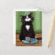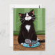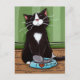 Carte postale à thème chat mignonne avec un tableau de Lisa Marie Robinson. Ce chat tuxedo noir et blanc a le plus grand sourire sur son visage. Regardez juste la taille de son souper de poisson ! Le chat est assis sur un parquet en bois devant un mur vert avec un bol de poisson I Love. Copyright © Lisa Marie Robinson. Tous droits réservés. Il est illégal d'utiliser ou de reproduire ceci, ou l'une de nos images, sans autorisation écrite.