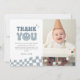 Feiern Sie mit diesem Blue ONE Happy Typ Geburtstag Dankeschön Card Ihren kleinen Tag! Mit einem fröhlichen Lächeln-Emoji fügt diese bearbeitbare Karte eine lustige und moderne Touch hinzu, um Ihren Gästen mit Stil zu danken.