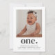 Une invitation moderne 1er anniversaire avec votre propre photo et le mot 'un' avec un coeur en dessous. Vous pouvez également modifier toutes les couleurs et tous les styles de texte, ainsi que la couleur du coeur si vous le souhaitez. Cliquez simplement sur le bouton "Personnaliser" -> "Modifier à l'aide de l'outil de conception".
