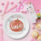 Niedlicher Orangenkürbis mit Eukalyptus-Blätter. 1. Party-Teller