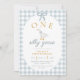 ONE Silly Goose Blue Gingham Daisy First Birthday Einladung