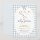 Perfect for a goose themed first birthday party, blue gingham birthday party, cottagecore birthday theme, or whimsical first birthday celebration, this invitation blends soft charm with a polished and coordinated look.