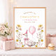 This “One Silly Goose” 1st birthday welcome sign features a delicate watercolor goose adorned with a soft pink bow and party hat, framed by airy florals and a gentle pastel palette. The refined typography and balanced composition create a timeless, feminine look—perfect for a thoughtfully curated celebration.