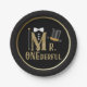 Herr ONEderful Teller zum ersten Geburtstag mit hübschen Goldworten, Top Hut und Stock mit Bugs Krawatte auf einem schönen schwarzen und goldenen Hintergrund. Sie können Text hinzufügen, um diese bezaubernden Mr. ONEderful Jungs erste Geburtstagszeitung Teller personalisieren.