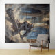 A powerful Oni demon, brandishing a spiked kanabo, emerges through dust and debris within the hallowed halls of a Gothic cathedral. Sunlight streams through stained glass, casting a divine light that contrasts with the primal fury of this legendary Japanese spirit. This is perfect for fans of Japanese Mythology, Dark Fantasy, and Gothic Architecture.