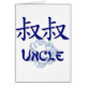 Onkel in den chinesischen Schriftzeichen/in den Symbolen mit einem blauen Dracheentwurfs- und -marineblautext. Einzigartiges China-Adoptionsgeschenk, das jeder möglicher Onkel einer Nichte oder des Neffeen von der China erfreut wird, um zu tragen.