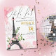 Ein wunderschöner Geburtstag mit einem Pariser Thema, das einen rosa Aquarell mit einer Lilie und den Eiffelturm in einem rosa Bogen mit Kirschblüten und einem grünen Blattzweig umfasst. Der Text für den Platzhalter in den Farben Schwarz, Rosa und Gold ist leicht mit Ihren Angaben zu aktualisieren. "Ooh La La!" in fett gedrucktem Text über der Spitze trägt zur Aufregung bei.