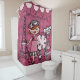 Der Duschvorhang ist perfekt für die kleine Diva, mit einer rosa haarigen Diva in einem rosa Kleid, Eiffelturm, rosa Poodle Hund, rosa Fahnen Banner, gestapelte Hutschachteln und Text, der Ooh La lautet!