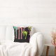 Schwarzes Kissen mit mehrfachen Farbensplotches und -Tropfen auf Front und Rückseite