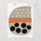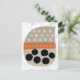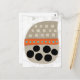 Eine lustige, skurrile und völlig niedliche abstrakte Grafik in neutralen Farbtönen mit orangen und türkisfarbenen Pop und großen schwarzen Kreisen. Die Hauptbilder sind eine beige Form mit helleren Quadraten in 3 Reihen, dann ein orangefarbenes Band mit Aquapunkten, große Kreise darunter. Alles auf einem texturierten weißen Hintergrund.