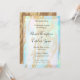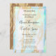 Eleganter, moderner und einfacher Hochzeitsempfang inspiriert durch opaler Edelstein mit Golddetails. Das Design ist eine Vorlage bereit, um Ihre Nachrichten, Braut und Bräutigam Namen, Datum, Ort, Richtung und Notizen über das Ereignis hinzufügen. Personalisieren Sie Ihre jetzt!