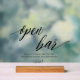 Add a playful, polished touch to your reception with the Open Bar Wedding Acrylic Sign – a stylish way to let guests know the drinks are flowing! With modern typography and a clean, elegant layout, this sign strikes the perfect balance between fun and sophistication.