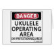 Gefahr, Ukulele Betriebsbereich! Ohrenschutz erforderlich! Das ist eine faire Warnung an alle, die sich mit Musikinstrumenten beschäftigen. Sehen Sie alle unsere musikalischen Entwürfe auf Tassen, Tasse, T-Shirts, Sweatshirts, Hüte, und andere Geschenke und Kleidung.