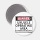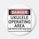 Gefahr, Ukulele Betriebsbereich! Ohrenschutz erforderlich! Das ist eine faire Warnung an alle, die sich mit Musikinstrumenten beschäftigen. Sehen Sie alle unsere musikalischen Entwürfe auf Tassen, Tasse, T-Shirts, Sweatshirts, Hüte, und andere Geschenke und Kleidung.