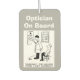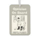 Optiker an Bord. Witziger Cartoon über Optimiker. Autolufterfrischer