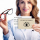 Doktor der Optometrie Visitenkarten Vorlage in minimalistischem Design mit einem Augensymbol und dem Namen Ihres Optometrie-Service vorn. Ersetzen Sie den Text auf der Rückseite durch Ihren Optometristen-Namen und die Kontaktinformationen Ihres Büros.