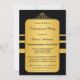Un or élégant et une invitation noire de partie de retraite, personnalisables tous les deux pour la société ou invitations privées. Cette invitation comporte un panneau d'or sur un arrière - plan noir avec des rayures et un ornement vintage élégant. Pour toutes les options customisantes, choisissez la "personnaliser il".