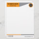 A bright orange rectangle on the left, with a gray triangle leading your eye to the company logo makes this letterhead stand out! Colorful and professional, very sharp looking.