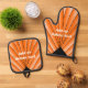 Orange Art Deco Design Personalisiert Ofenhandschuh & Topflappen-Set