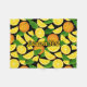 Orangefarbene Scheiben und Blätter. Nahtloses Muster. Benutzerdefinierte Hintergrundfarbe. Eigener Text.
