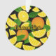 Orangefarbene Scheiben und Blätter. Nahtloses Muster. Benutzerdefinierte Hintergrundfarbe. Benutzerdefinierter Text auf beiden Seiten.