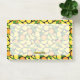 Orangefarbene Scheiben und Blätter. Nahtloses Muster. Benutzerdefinierte Hintergrundfarbe. Eigener Text.