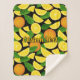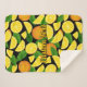 Orangefarbene Scheiben und Blätter. Nahtloses Muster. Benutzerdefinierte Hintergrundfarbe. Eigener Text.