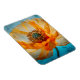Eine von der KI generierte orangefarbene Blume mit leuchtend blauem Hintergrund