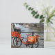 Orangefarbenes Fahrrad Postkarte. Ein Oranje (Orange) Fahrrad Parken auf einer Amsterdamer Brücke auf den Kanälen mit einem Kanalboot im Wasser und anderen Brücken in den Niederlanden/Holland. Vollständig anpassbar! Personalisieren und fügen Sie mehr Text und Bilder, wenn Sie gewollt!
