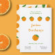 Eine frische Geburtstagseinladung mit orangefarbenen Illustrationen und anpassbaren Texten! Der Rücken ist mit einem Schnitt, einer Hälfte und einem orangefarbenen Muster versehen. Sie können Texte personalisieren und für ein Party, eine Hochzeit, eine Pensionierung, einen Junggeselinnen-Abschied usw. verwenden.