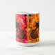 Vibrant illustration of a playful black cat chasing a yarn ball, wrapped around a mug where each side glows in a different fiery color, from deep red to warm orange and golden yellow. Bold doodle lines, neon accents and swirling shapes create an energetic graffiti-style scene, giving this design a unique, modern pop-art look that instantly stands out in any collection.