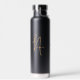 Custom Orange und schwarz Script Monogram Name Elegant Chic Water Flasche. Ein einfaches und modernes Design in Schwarz-Weiß-Farbe mit handgeschriebener Kalligraphie für ein berufliches und cooles Aussehen. Erstellen Sie Ihre eigenen personalisierten, umweltfreundlichen Geschenke. Jeder Schriftart, jede Farbe, kein Minimum.