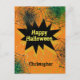 Eine personalisierte Halloween-Postkarte, die an ein Enkelkind, eine Familie, einen Freund und mehr geschickt wird. Verfügt über ein paar Spinnweben und Halloween-Farben in Orange, Gelb, Grün und Schwarz. Sie können leicht mit einem Namen personalisieren.