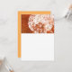This card showcases an expressive Orange and white flower blossom on its upper side. The background Is in the same shade