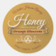 Einfache Ikone der Honigbiene mit einer Zierrolle und einem Banner für Orange Blossom Honig, oder personalisiert für jede Art, mit dem Namen des Imkers oder des Imkerbetriebs, Produktmerkmale, Nettogewicht und Kontaktinformationen.