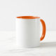 Eine Kaffee-Tasse mit einer lebhaften Blume aus orangefarbenem Power, wobei sich der Begriff "Break from the Grind" um das Bild dreht. Das Design suggeriert einen Ausbruch von Energie und Positivität, der ein Gefühl von Entspannung und Verjüngung bietet.