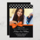 Invitations de Faire-part de licence de photographie de Orange Bow Pois. Un motif élégant en pois noir et blanc avec un ruban orange. Parfait pour un baccalauréat, un diplôme d'études supérieures ou une fête de fin d'études ! Les dessins sont des illustrations/graphiques imprimés à plat - PAS DE RIBBON RÉEL. Pour redimensionner et positionner votre photo, cliquez sur le bouton "CUSTOMISER IT".