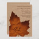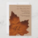 Auf einem grabfarbenen Hintergrund betont ein großes mit Monogramm Ahornblatt diese Einladung für die Hochzeit im Jahrgang. Es wird auf dem Basispapier gezeigt, aber ich empfehle das Gewicht und die Textur des Leinenpapiers.