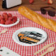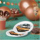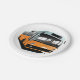 Ein orangefarbener Bus parkte auf. Dieses Design wirkt auf diese Paper-Teller sehr effektiv