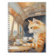 Orange Cat Drinking Tee in einem Vintagen Zug, surreale Kunstmalerei für Katzenliebhaber.