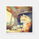 Orange Cat Drinking Tee in einem Vintagen Zug, surreale Kunstmalerei für Katzenliebhaber.