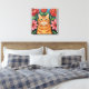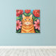 Orange Cat Folk Art Flowers Leinwanddruck