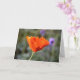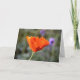 Auffallendes Bild eines kalifornischen Chiffonmohns mit Akzenten von lavenfarbenen Wildblumen, gegen eine Wand. Eine großartige Blumengrüße für jeden!