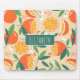 Mousepad mit Retrovibe. Ein Muster aus geschnitten Orangen, Orangen, grünen Blätter und weißen Blüten.