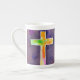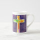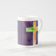 Orange Kreuz auf lila Hintergrund. Aquarellgestaltung. Erstellt mit KI-Software.