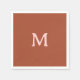 Ein verbrannter orangefarbener Hintergrund zeigt ein hellrosa Monogramm.
