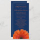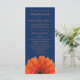 Vous pouvez personnaliser tout le texte sur cette fleur de marguerite orange (marguerite gerbée), arrière - plan bleu marine personnalisées programmes de mariage abordables. L'aménagement comporte une marguerite orange vif et joyeuse sur un arrière - plan arrière - plan bleu marine. Design floral simple et élégant. REMARQUE : Il s'agit d'un design imprimé plat sans embellissement en relief ou en 3D. Pour modifier le texte, utilisez les options de personnalisation. Ou, pour des modifications plus importantes (police, taille de police, couleur de police, emplacement du texte), choisissez customiser. Vous pouvez même changer la couleur bleu marine arrière - plan que vous voulez. Il s'agit d'un grand programme de mariage bon marché pour un mariage au printemps, été ou automne / automne ou un mariage avec un thème de fleur de marguerite orange.